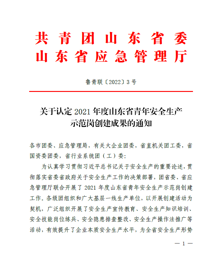 1月5日,“2021年度山東省青年安全生產示范崗”評選結果揭曉,水發能源集團旗下沂南力諾太陽能電力工程有限公司榮獲“山東省青年安全生產示范崗”榮譽稱號。